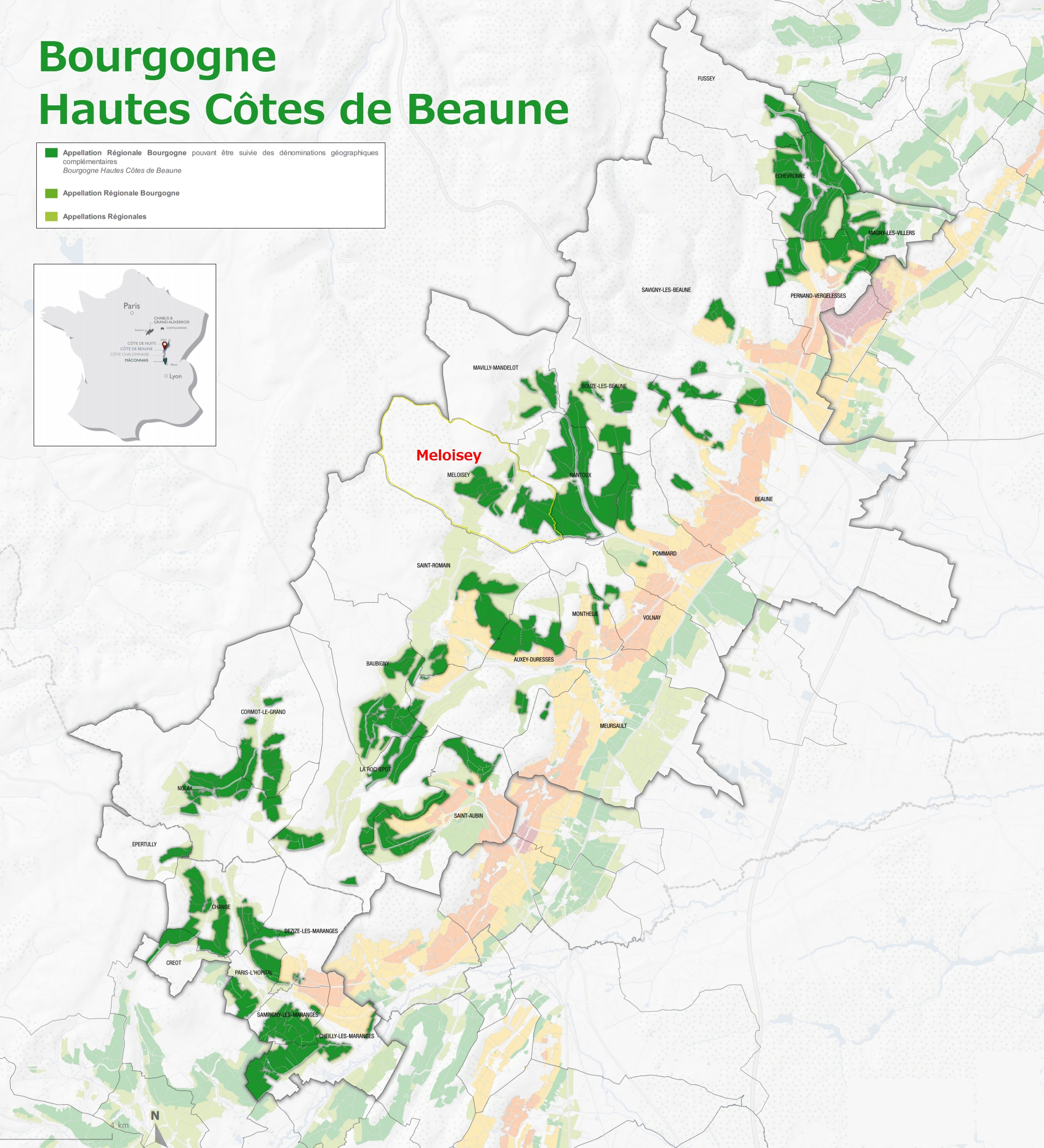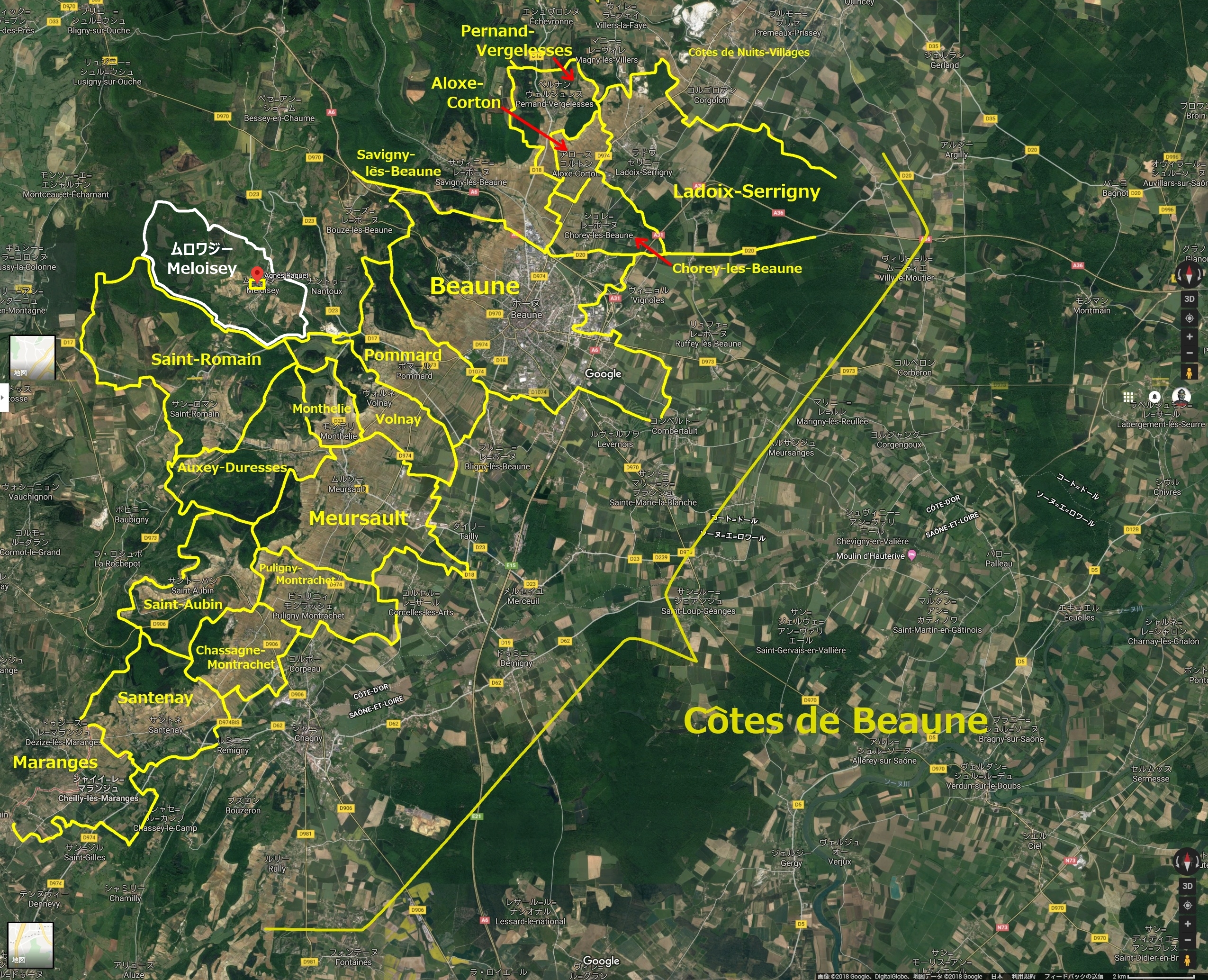 さて、そのムロワジー村をコート・ド・ボーヌ全体の中で位置確認。